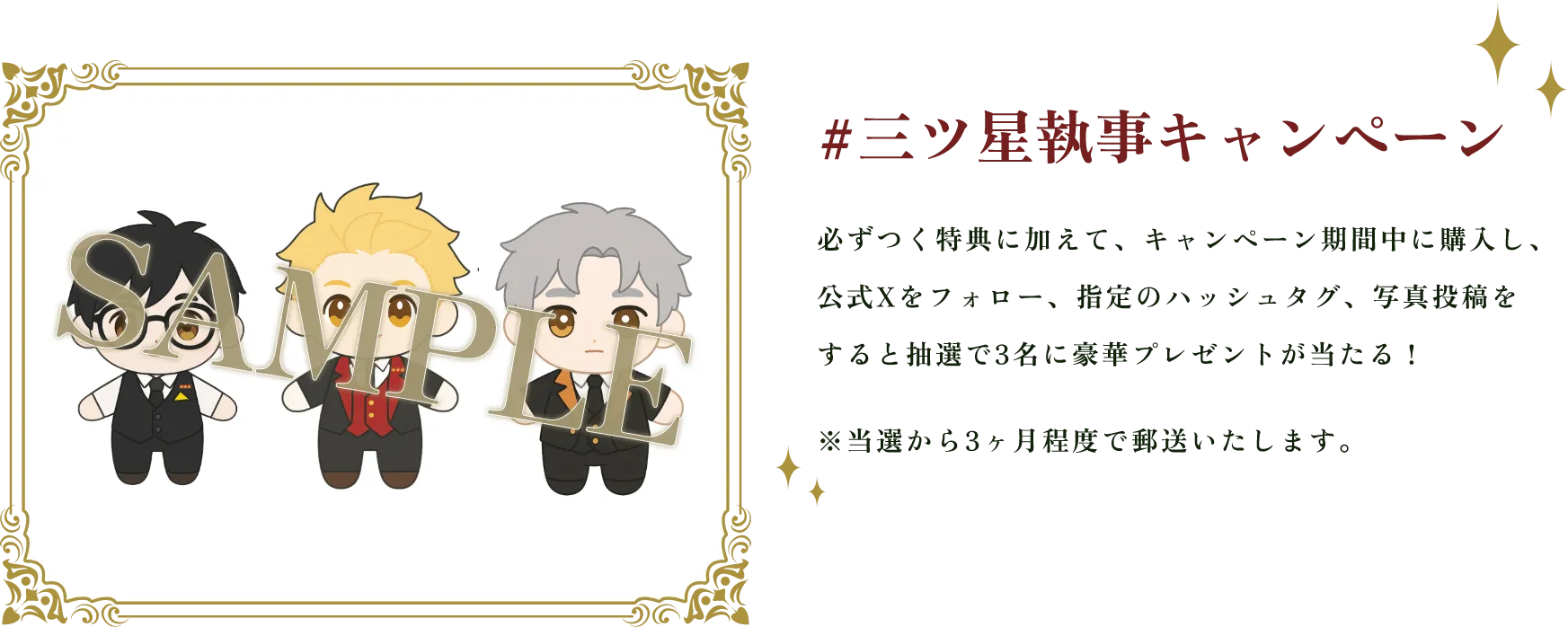 ・執事キャラ ぬいぐるみ 1キャラ1体ずつ 計3体(3名様限定)キャンペーン特典の視聴期間について