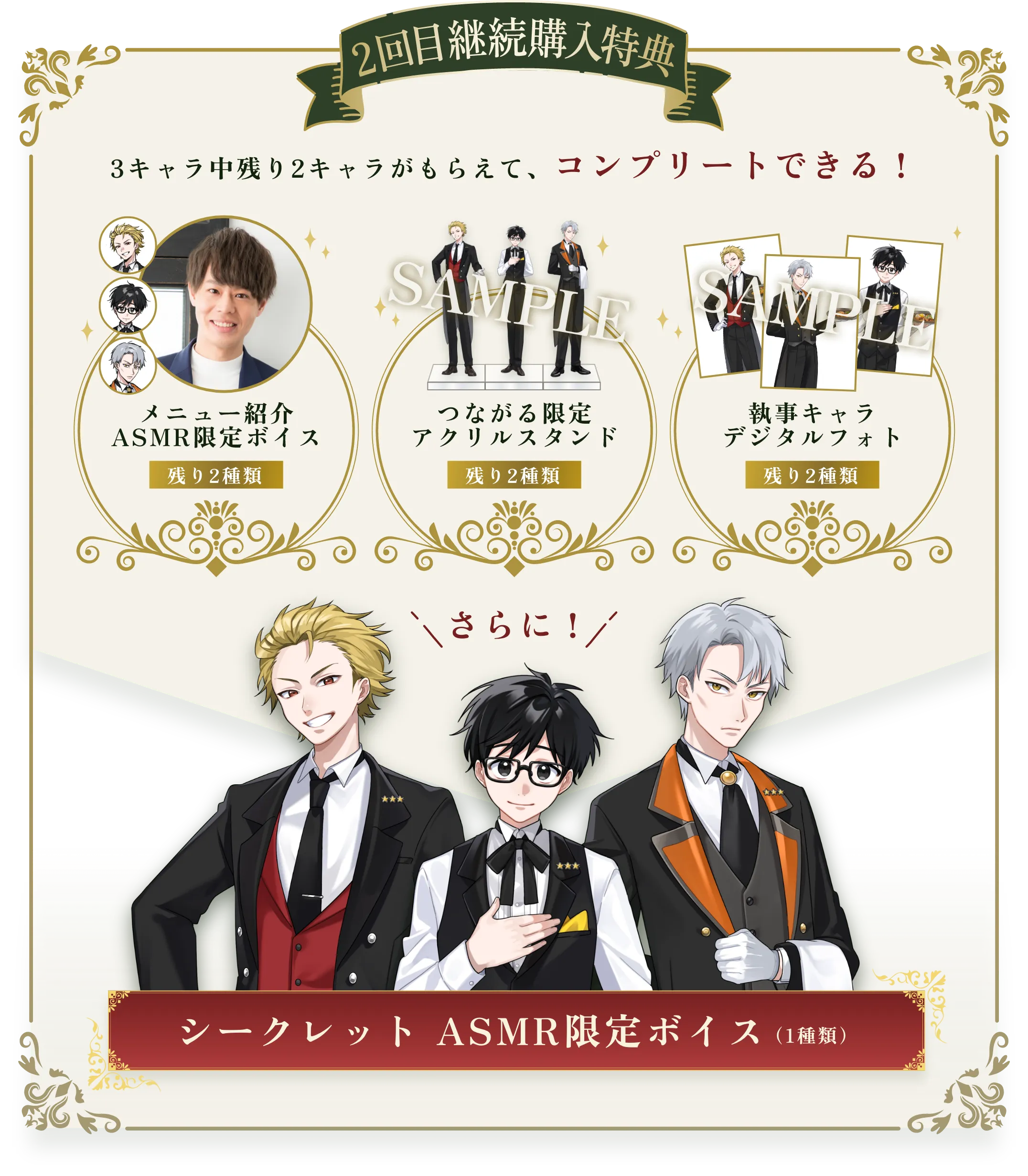 ※3キャラ中1キャラの特典セットがランダムでもらえます。 〈2回目継続購入特典〉